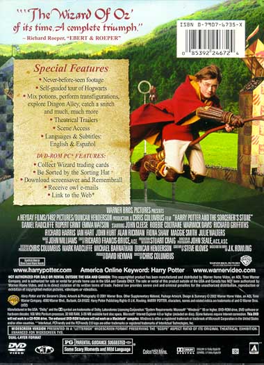 DVD-ROM Features: Be Sorted by the Sorting Hat Collect Wizard Trading Cards Download Screensaver and Remembrall Receive Owl E-mails Link To The Web |