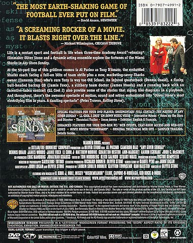 Documentary Full Contact: The Making Of Any Given Sunday LL Cool J Shut 'Em Down Music Video Interactive Menus Notes On The Stars And Director Theatrical Trailer Scene Access