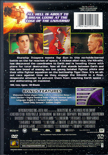 Starship Troopers meets Top Gun in this no-holds-barred battle on the far reaches of space. A vicious alien race, the Kilrathi, has discovered the coordinates to Earth and is heading there with plans for total destruction. Now all that stands between Earth and this new breed of enemy are two young hotshot fighter pilots and their elite fighter squadron on the battleship Tiger Claw. It's an all out race against time as they engage the Kilrathi in a final, desperate attempt to prevent them from reaching Earth space and obliterating all mankind. |