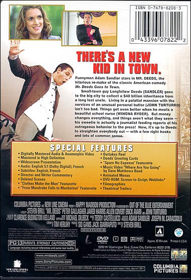 Director and Writer Commentary Deleted Scenes "Clothes Make The Man" Featurette "From Mandrake Falls to Manhattan" Featurette "Spare No Expense" Featurette Deeds' Greeting Cards Outtakes Reel Music Video: "Where Are You Going" by Dave Matthews Band DVD-ROM: Script to Screen and Weblinks Animated Menus Filmographies Theatrical Trailers |