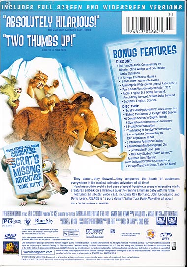 Disc One: Full-Length Audio Commentary with Director Chris Wedge and Co-Director Carlos Saldanha 3 All-New Interactive Games 8 DVD-ROM Games/Activities