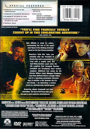 Co-starring James Cromwell and Liev Schreiber, The Sum of All Fears adds up to the year's most explosive entertainment. |