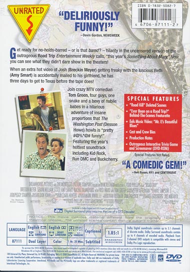 "Road Kill" Deleted Scenes "Ever Been on a Road Trip?" Behind-The-Scenes Featurette Eels Music Video: "Mr. E's Beautiful Blues" Cast and Crew Bios Production Notes Outrageous Interactive Trivia Game and Screensaver (DVD-ROM) |