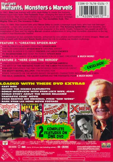 Feature 2: Stan Lee's first writing assignment on "Captain America" The birth of the "Fantastic Four" and the "X-Men Phenomenon" Jack Kirby and the fan controversy over creator credit "Mighty Marvel Bullpen"; Stan's thoughts on the movies based on Marvel Characters including: The X-Men, The Hulk, Daredevil, The Silver Surfer, and The Fantastic Four. |
