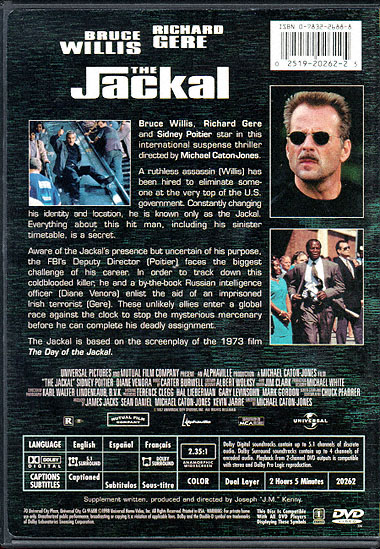 Commentary with the Director Original Featurette: The Making of the Jackal Interviews with the Cast Never-Before Seen Footage Deleted Scenes Alternate Ending Theatrical Trailer Production Photographs |