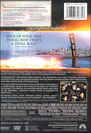 Commentary by Director Jon Amiel To The Core and Back-the Making of The Core Deconstruction of the Visual Effects 10 Deleted/Extended Scenes with Director Commentary |