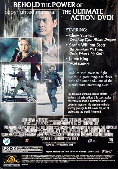 Deleted Scenes Commentary by Editor Robert K. Lambert Alternate Ending Commentary by Editor Robert K. Lambert "The Tao of Monk" - 5 Behind-the-Scenes Featurettes "The Monk Unrobed" Featurette Audio Commentary by the Writers Audio Commentary by the Director and Producers Charles Roven and Douglas Segal Behind the Scenes Photo Gallery |
