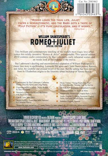 This brilliant and contemporary retelling of the world's most tragic love affair makes this wildly inventive "Romeo & Juliet" unforgettable. This special edition DVD contains audio commentary by Baz Luhrmann, early rehearsal scenes and an inside look at the making of the movie.