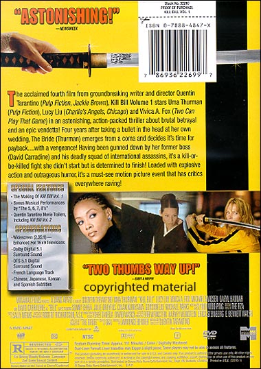 The Making of Kill Bill Vol. 1 Bonus Musical Performances by "The 5, 6, 7, 8's" Quentin Tarantino Movie Trailers, including Kill Bill Vol.2