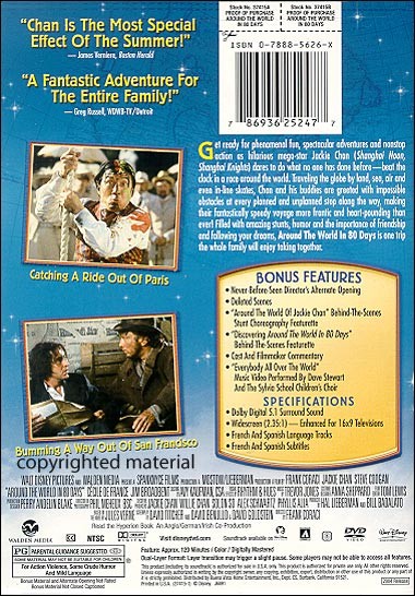 Never Before Seen Director's Alternate Beginning Deleted Scenes Discovering Around The World In 80 Days Behind The Scenes Featurette Around The World With Jackie Chan Behind The Scenes Featurette Cast and Filmmaker Commentary "Everybody All Over The World" Performed By Dave Stewart and The Sylvia School Children's Choir