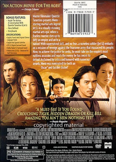 Master filmmaker Quentin Tarantino presents Hero - starring martial arts legend Jet Li in a visually stunning martial arts epic where a fearless warrior rises up to defy an empire and unite a nation! With supernatural skill...and no fear...a nameless soldier (Jet Li) embarks on a mission of revenge against the fearsome army that massacred his people. Now, to achieve the justice he seeks, he must take on the empire's most ruthless assassins and reach the enemy he has sworn to defeat! Acclaimed by critics and honored with numerous awards, Hero was nominated for both an Oscar and Golden Globe! |