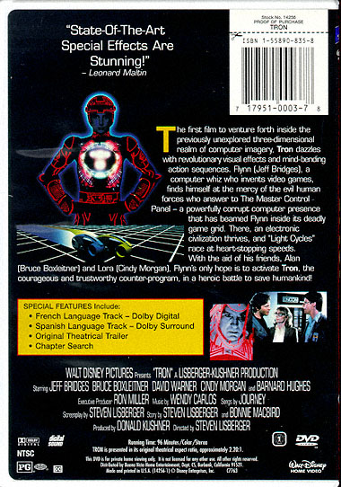 | The first film to venture forth inside the previously unexplored three-dimensional realm of computer imagery. Tron dazzles with revolutionary visual effects and mind-bending action sequences. Flynn, a computer whiz who invents video games, finds himself at the mercy of the evil human forces who answer to the Master Control Panel- a powerfully corrupt computer presence that has beamed Flynn inside its deadly game grid. There, an electronic civilization thrives, and "Light Cycles" race at heart-stopping speeds. With the aid of his friends, Alan and Lora, Flynn's only hope is to activate Tron, the courageous and trustworthy counter-program, in a heroic battle to save humankind! |